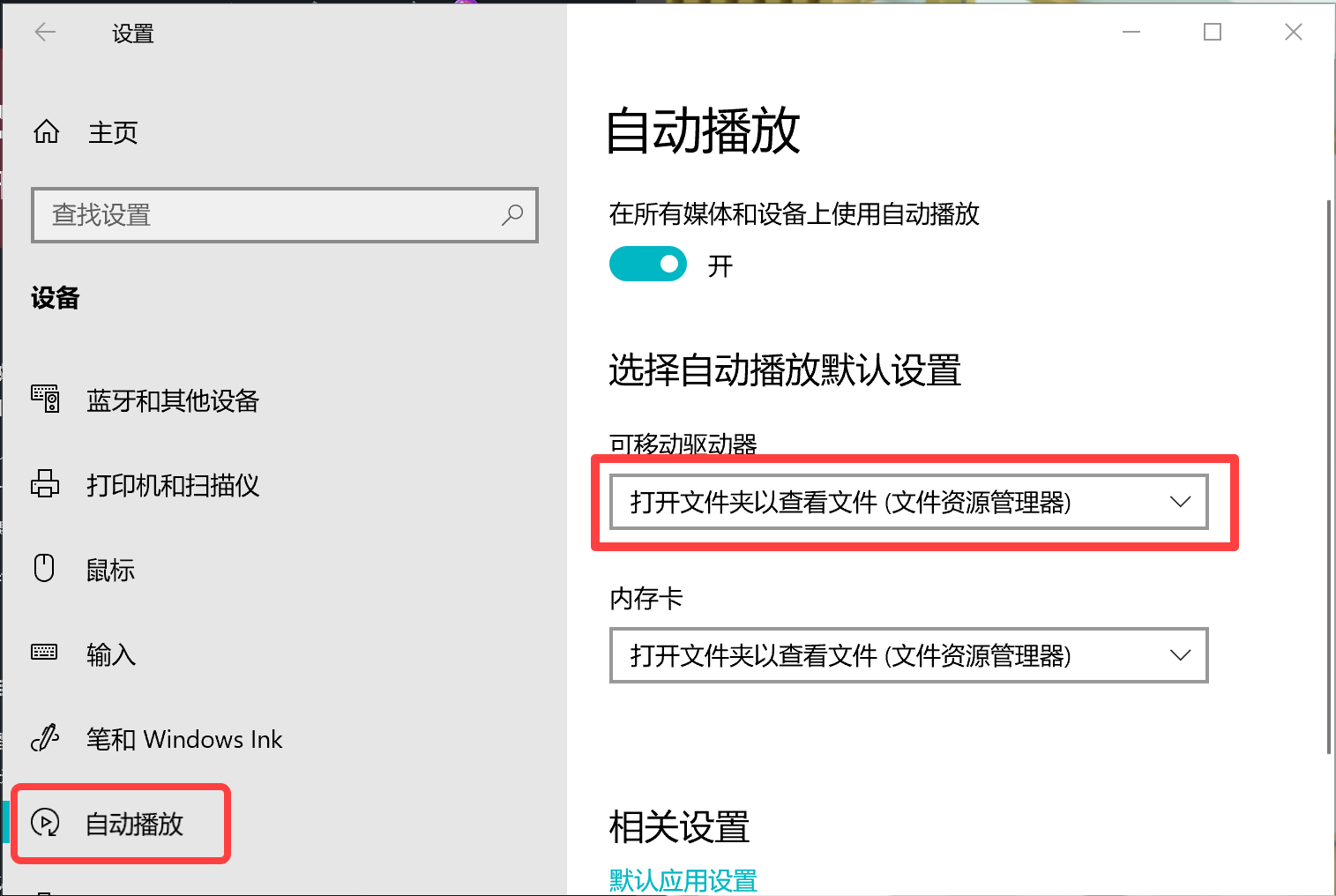 开启开关:确保顶部的 “在所有媒体和设备上使用自动播放” (Use AutoPlay for all media and devices) 开关处于 “开” 的状态。