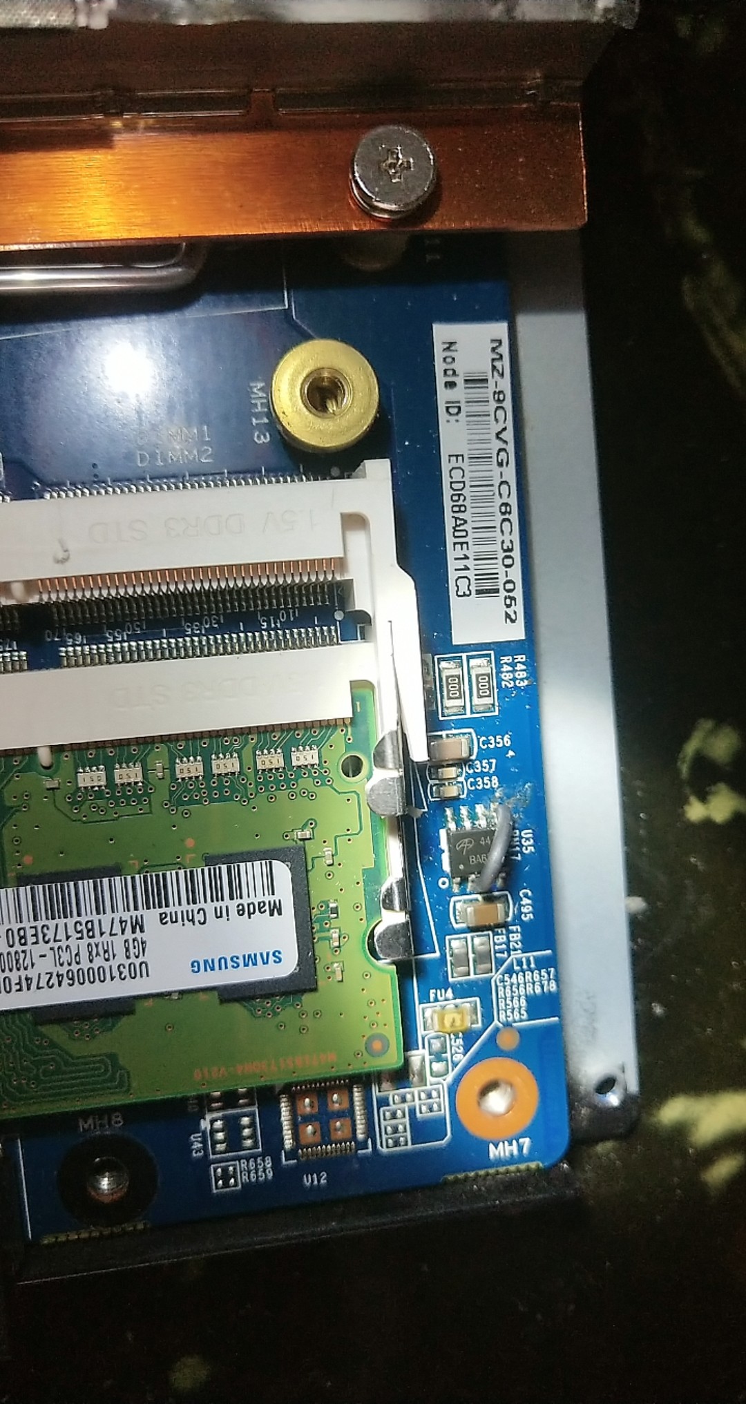 如图所示,拆下硬盘和硬盘架,硬盘架下方找到如图所示芯片,使用足够粗的线短接上方4号脚和下方2号脚(接错后果自负)