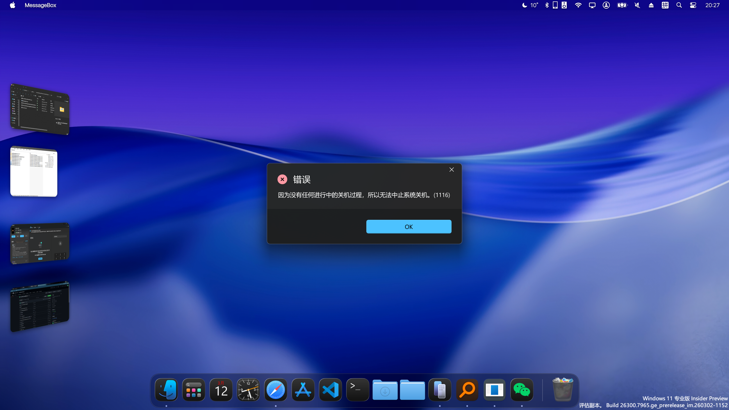至此,你设置完了自动关机,在关机前30s会弹出置顶提示