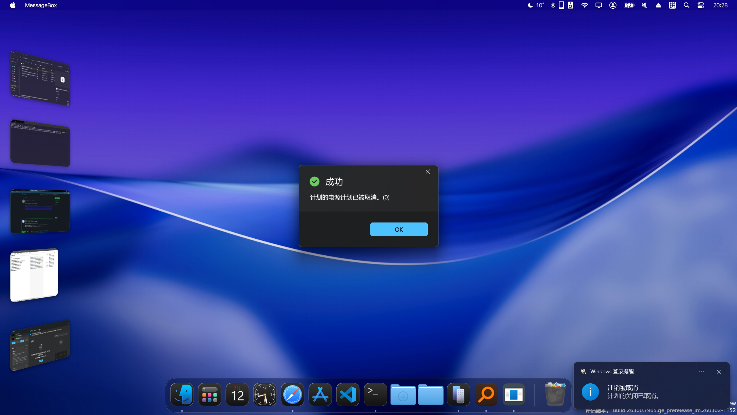 可以选用我这款取消自动关机的应用,将其固定到任务栏和桌面即可快捷取消,具有Fluent弹窗效果